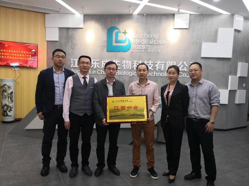江西樂成醫療攜全體員工參加江西省中醫藥大學校友會江西分會揭牌儀式。出席此次揭牌儀式的領導有:江西省中醫藥大學校辦主任校友會全國總會長溫泉,江西省中醫藥大學校友會副會長兼江西分會會長、樂成醫療董事長萬蒙,江西中醫藥大學校友會秘書長易輝亮及杰出校友李忠杰、趙根英、王維明。