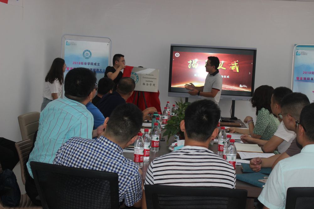 揭牌儀式上,江西樂成生物醫療有限公司總經理黃龍致辭,拓谷學院院長、市場部總監田偉向前來參加培訓的導師們表示歡迎,并期待導師們通過五天的系統培訓學有所獲,學有所成,學以致用。